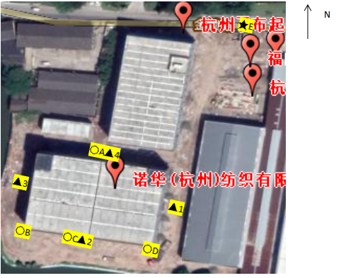 注:○為無組織測點(diǎn),★為廢水測點(diǎn),▲為廠界噪聲測點(diǎn)。 |